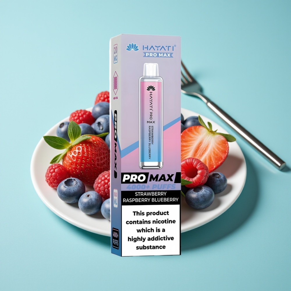 ホーム| 注目商品| HAYATI| Hayati Pro Max 4000パフス ディスポーザブルベイプ ストロベリー・ラズベリー・ブルーベリー 2mlタンク 1400mAh リチャージャブル